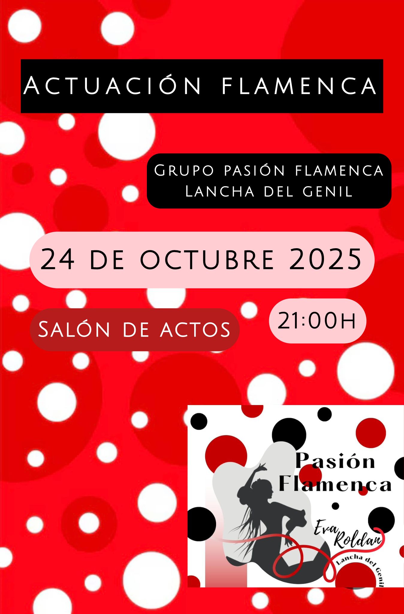 El próximo 24 de octubre a las 21:00 h, el Grupo Pasión Flamenca de Lancha del Genil nos deleitará con una actuación llena de ritmo, fuerza y sentimiento.